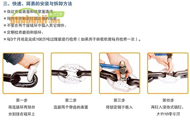 弧齿型接链环用来链接垂直面或水平面的矿用圆环链,主要与bv伟德官网中文官网、转载机、跑煤机使用的GB/T12718规格的矿用圆环链配套使用。