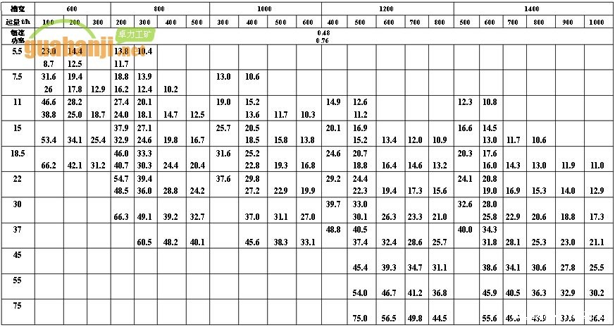 XGZ、MXGZ系列轻型bv伟德官网中文官网功率、长度选择表