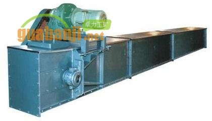 物料经设备进料口均匀地进入槽体底部,由从机尾向机头方向作封闭连续运行的承载刮板输送链将物料从进料口处连续均匀地输送至出料口排出。可实现多点进料、多点卸料。机尾设置丝杆调节装置来调节输送链的松紧度,保证其在运行中始终保持适度张紧状态,使设备处于稳定的运行状态。